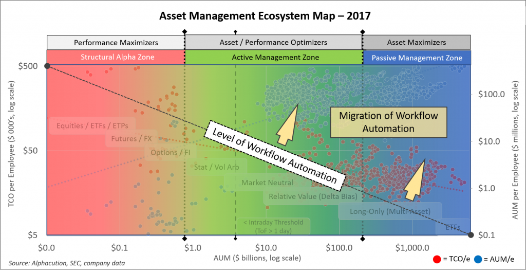 Here we go: There’s a broad continuum in the trading and asset management world where strategies, assets under management (AUM), headcount (and skills mix), technology spending and workflow automation are all highly correlated. You may have seen us present this hypothesis on several previous occasions, but it continues to evolve, and therefore, continues to require emphasis and exposure.