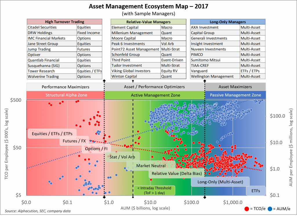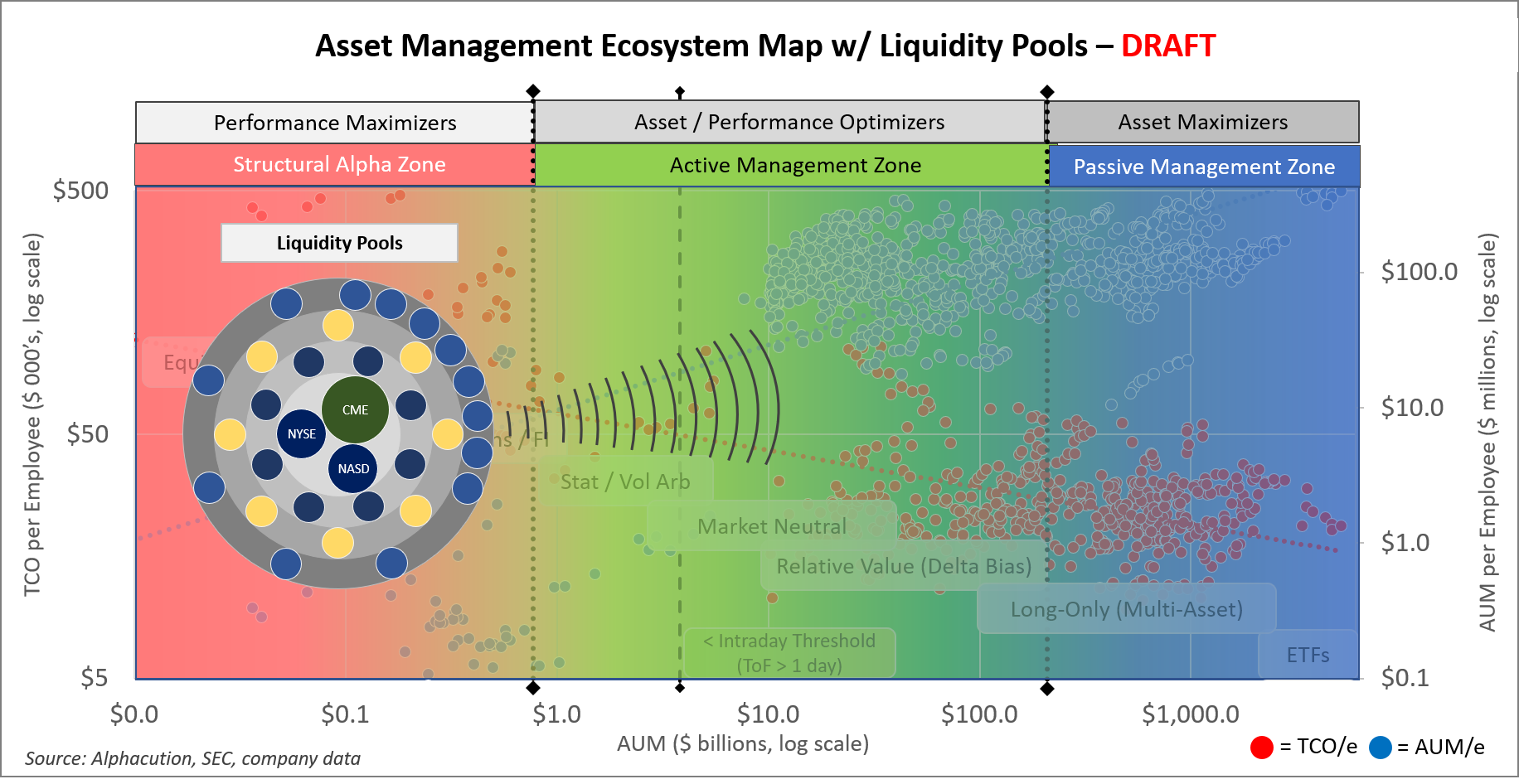 Throughout, what I want us all to remember to keep our eyes on is the potential for the active and passive management zones – where hedge funds and traditional asset managers live, respectively – to exhibit increasingly noticeable shifts in roster. I want to get to that monitoring quickly, however the structural alpha zone foundation needs to be established first.
