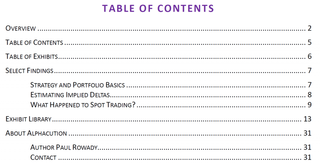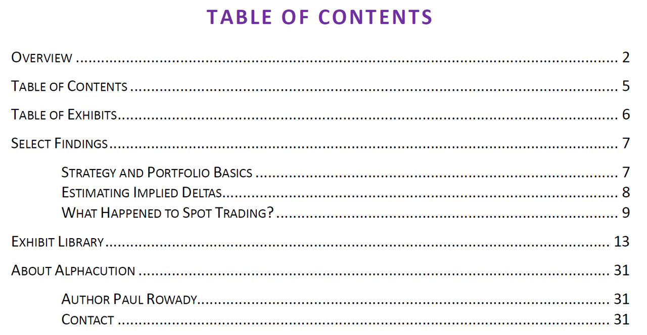 In this 32-page, 38-exhibit case study on the proprietary option trading firm, Spot Trading, that closed in late 2017, Alphacution showcases the information and insights that can be harvested from a cache of data that is hiding in plain sight. This report is also intended to educate clients and our broader network about the mechanics and drivers of macro-market structure, as well as to provide a template that will begin to set expectations for the nature of premium content that is being made available as part of Alphacution’s emerging research subscription service.
