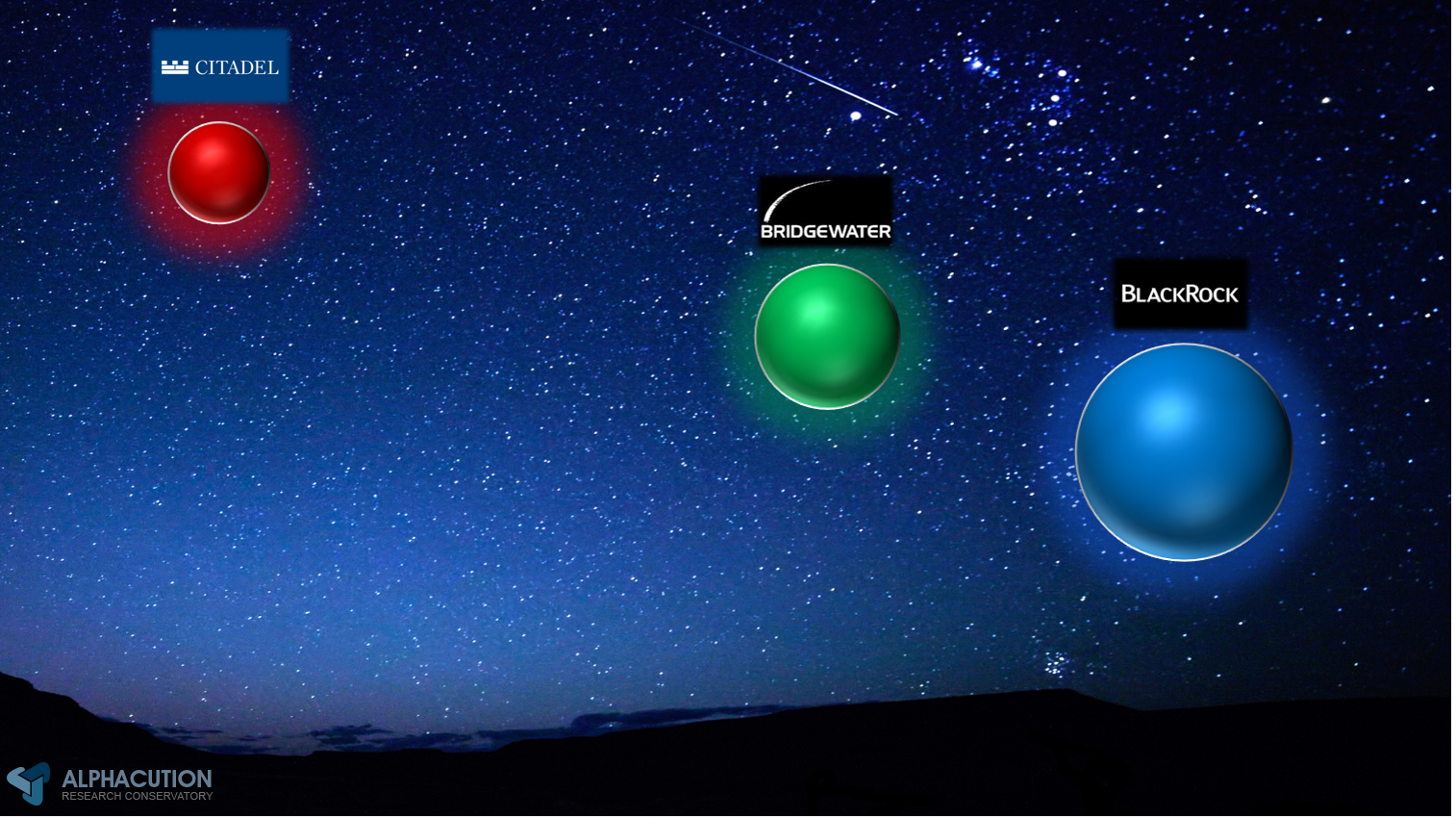 What follows from here is a story Alphacution started with the completely nerdalicious Feed post, “The Physics of Market Structure – Part 1.” (After all, we did promise a Part 2.) Feel free to return to that piece, but we will summarize the key points from that and other prior research as we round the horn, and then perform the trick of stealing home by having something new to say about a common thread that runs through Citadel, Bridgewater and BlackRock.