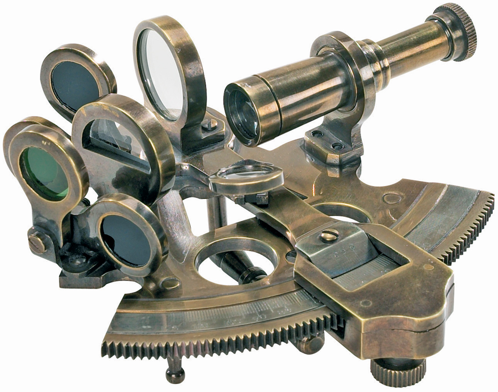 A sextant is an optical navigation device used by sailors starting around 1730. With practice, it can prove quite accurate in plotting courses. Though the contemporary digital equivalent – a global positioning system (GPS) – has become the mainstream tool for navigation, sextants are still in use today among a small but avid group of yachtsman, survivalists and cognoscenti.