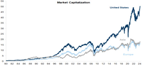 Moreover, the weighting of US stocks within global equity allocations have risen to 30-year highs even with the expansion of equity capital markets geographically, as shown below…