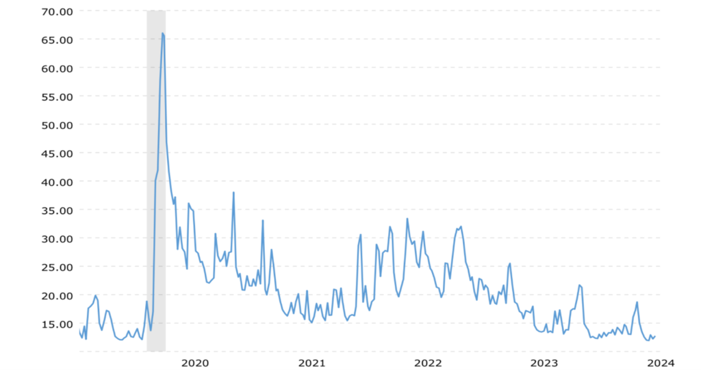 Long story short, the above creates a very low volatility environment, as shown by the CBOE Volatility Index (VIX) chart below: