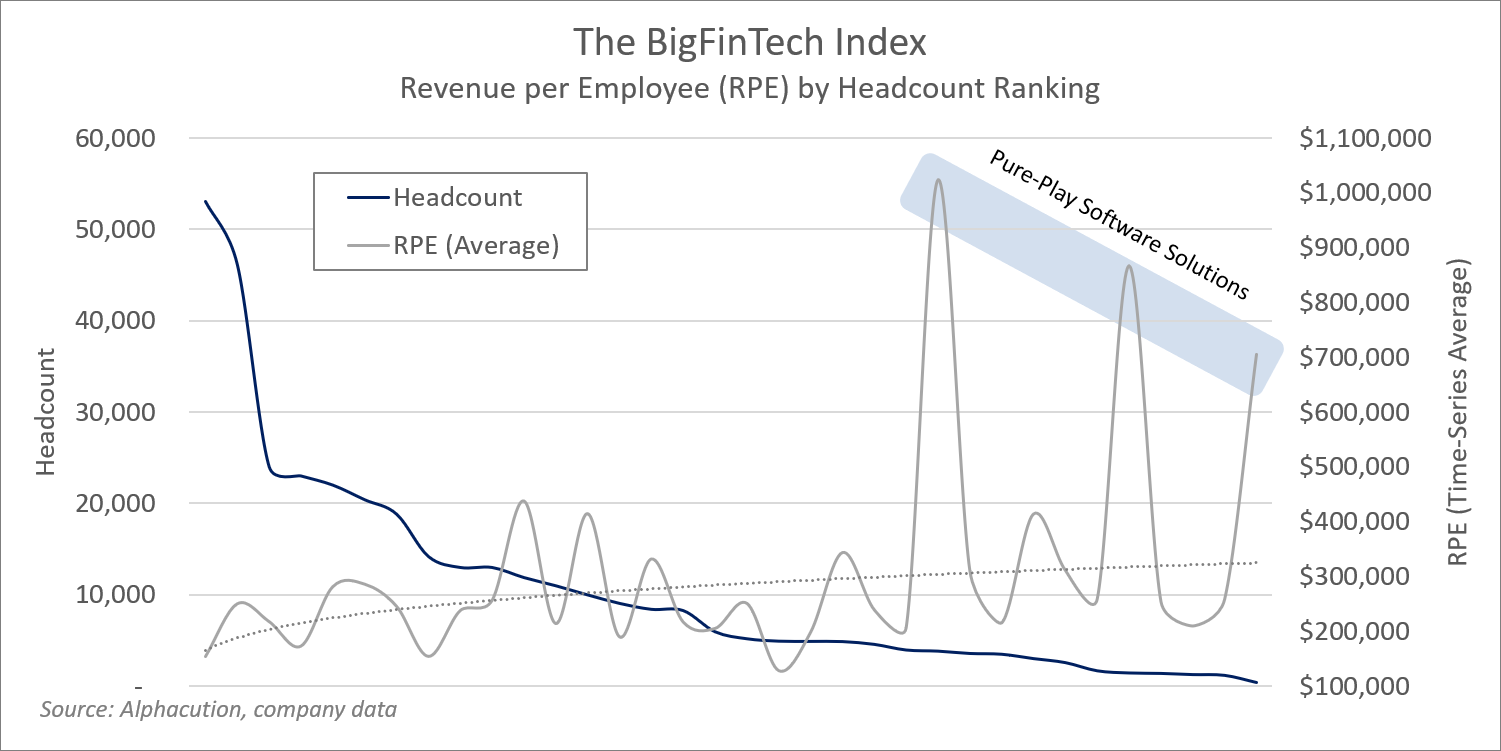 As we have turned to an analysis of some of the largest data processing, content development and software solution providers in the financial ecosystem – a group we have dubbed “BigFinTech” – the aforementioned relationship between technology and performance persists, but takes on additional meaning.