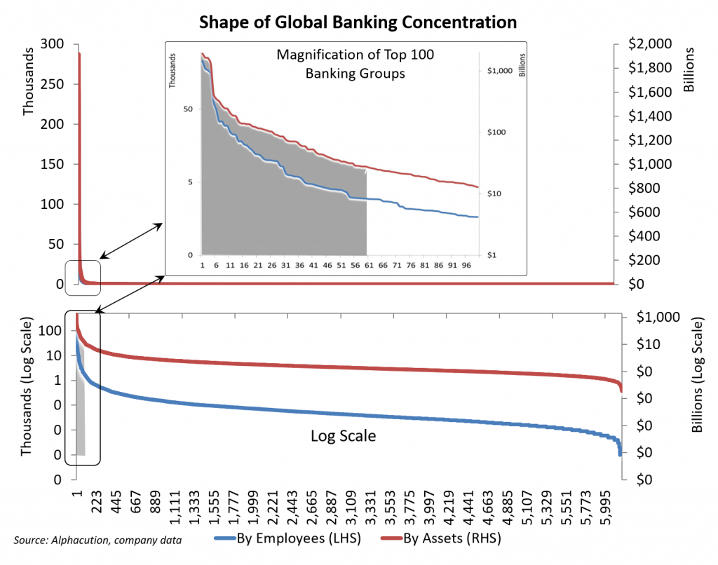 What’s more, our current techno-economic paradigm favors an increasing concentration of power; an incumbency of incumbents. Speaking of the broad spectrum of financial services, in particular, everywhere you look – banking, asset management, hedge funds, market-making, and their solution providers – the list of who controls the space is surprisingly short. We think the world is such an expansive place, but it is not. The top 50 banks, top 50 asset managers, top 50 hedge funds and top 50 financial services (FSI) solution partners control most of the action, like the 80-20 rule. Market-making is worse, especially in equities, where the concentration is represented by fewer entities than you have fingers.