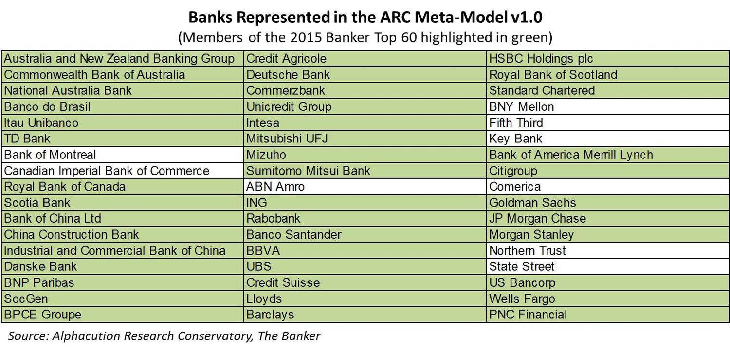 Much longer story short, I spent late summer and early fall digging through company data and regulatory filings in pursuit of what some might call lightning in a bottle: a defensible estimate of Global FSI TCO. Good news is that a fascinating picture has already begun to take shape. So far, our global TCO model consists of individual models of the following 51 global banks (over the 10 years of immediately pre- and post-GFC periods, 2005-2014):