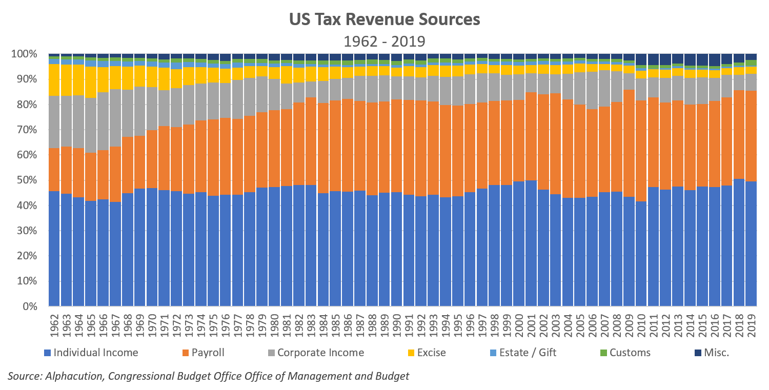Expanding on that, the chart below illustrates the change in the sources of that tax revenue from 1962 through 2019, which leans increasingly on beleaguered human capital. ‘Nuff said…