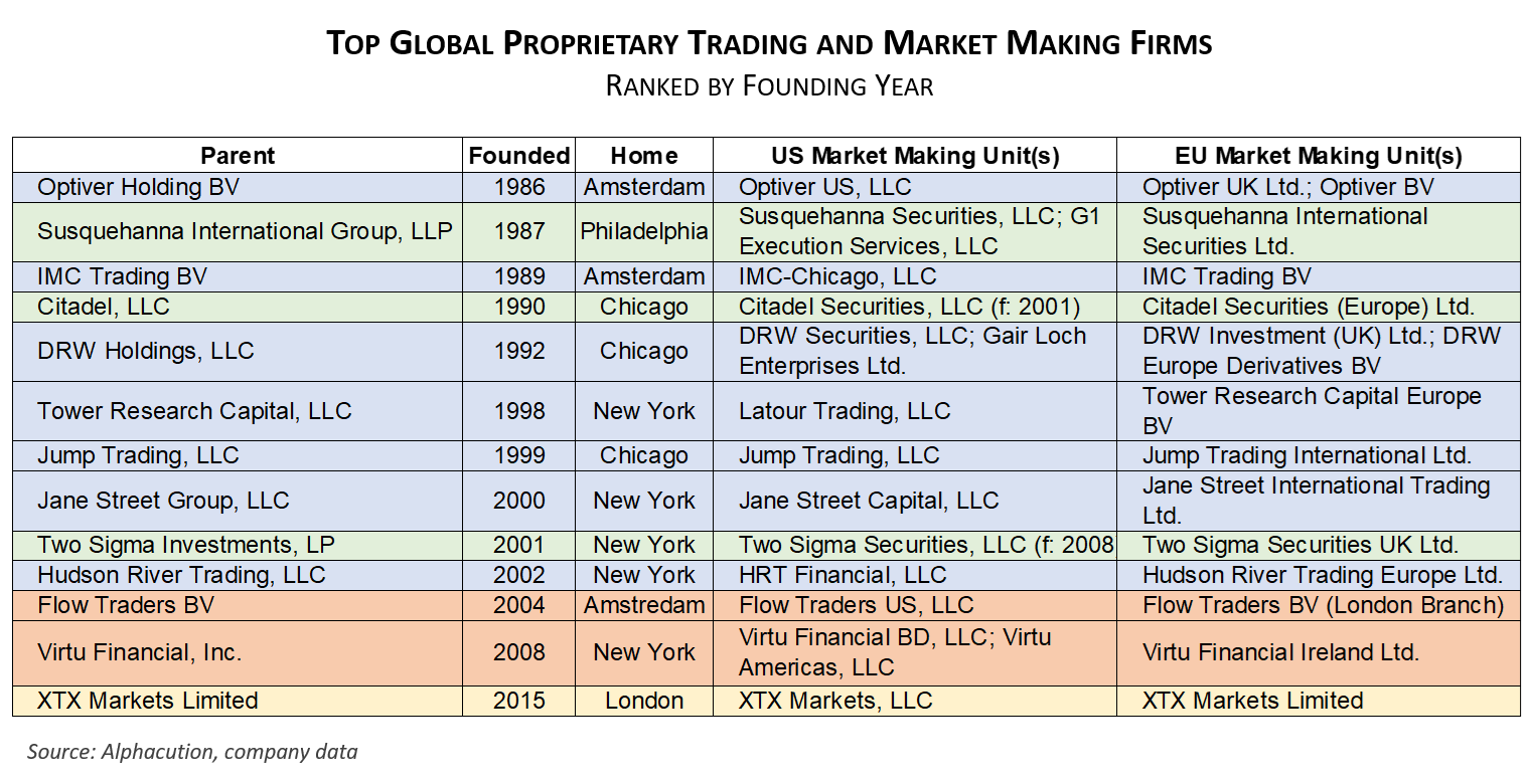 With that, the following list of leading prop trading and market making firms should be among those that do well in this unusual environment…