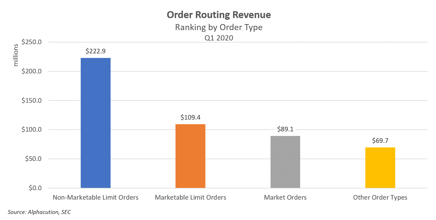 Based on Alphacution’s current assembly of ~$490 million in order routing revenue for Q1 2020, NMLO’s represent 45.4% of the total – or, $222.9 million – and, the sum of marketable and non-marketable limit orders represent 67.7% of the total – or, $332.3 million: