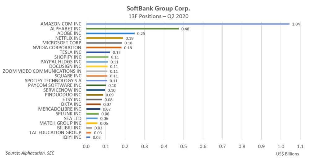 During Q2 2020, SoftBank’s founder, Masayoshi Son, personally funded a new asset management arm. By mid-August, SoftBank was required to file its first ever 13F report. It contains 27 positions with total holdings value of $17.5 billion. Two of the positions – held by two affiliates of SoftBank – are in one stock; representing 77.9% of this value: T-Mobile US, Inc. In aggregate, this allocation appears to be part of a core business strategy.