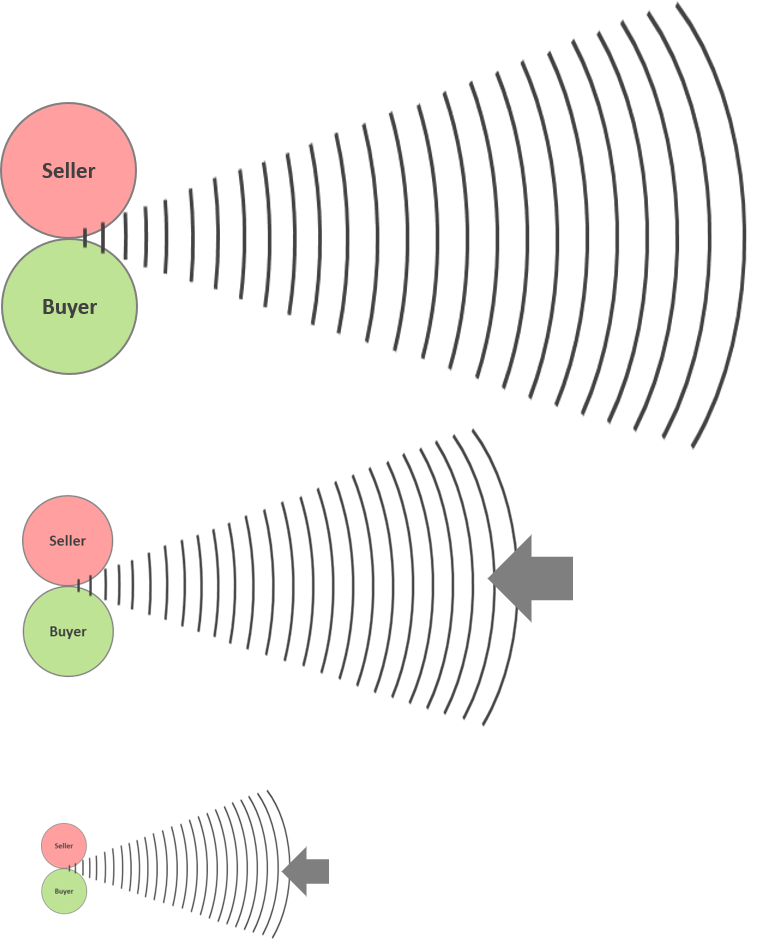 Let’s go back to first principles: Consider that each transaction absorbs information within a buyer and seller – and then reflects that information in price movement after the transaction. The metaphor of throwing a pebble or something much larger into a pool of water – and the waves that each creates – is often used here.